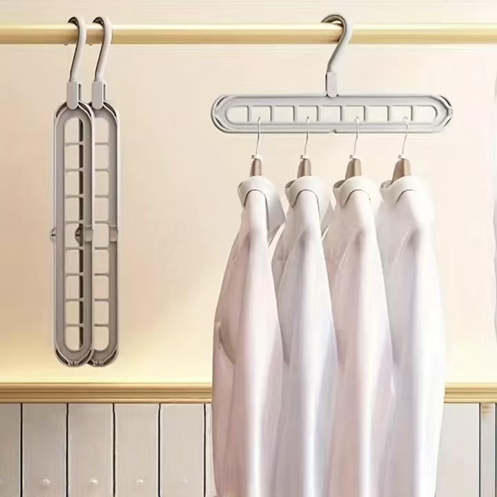 Optimize your closet with minimal effort! This ingenious 360° rotating hanger features 9 slots for hanging multiple garments at once. Ideal for small closets, growing wardrobes, or for perfectly organizing outfits and accessories.