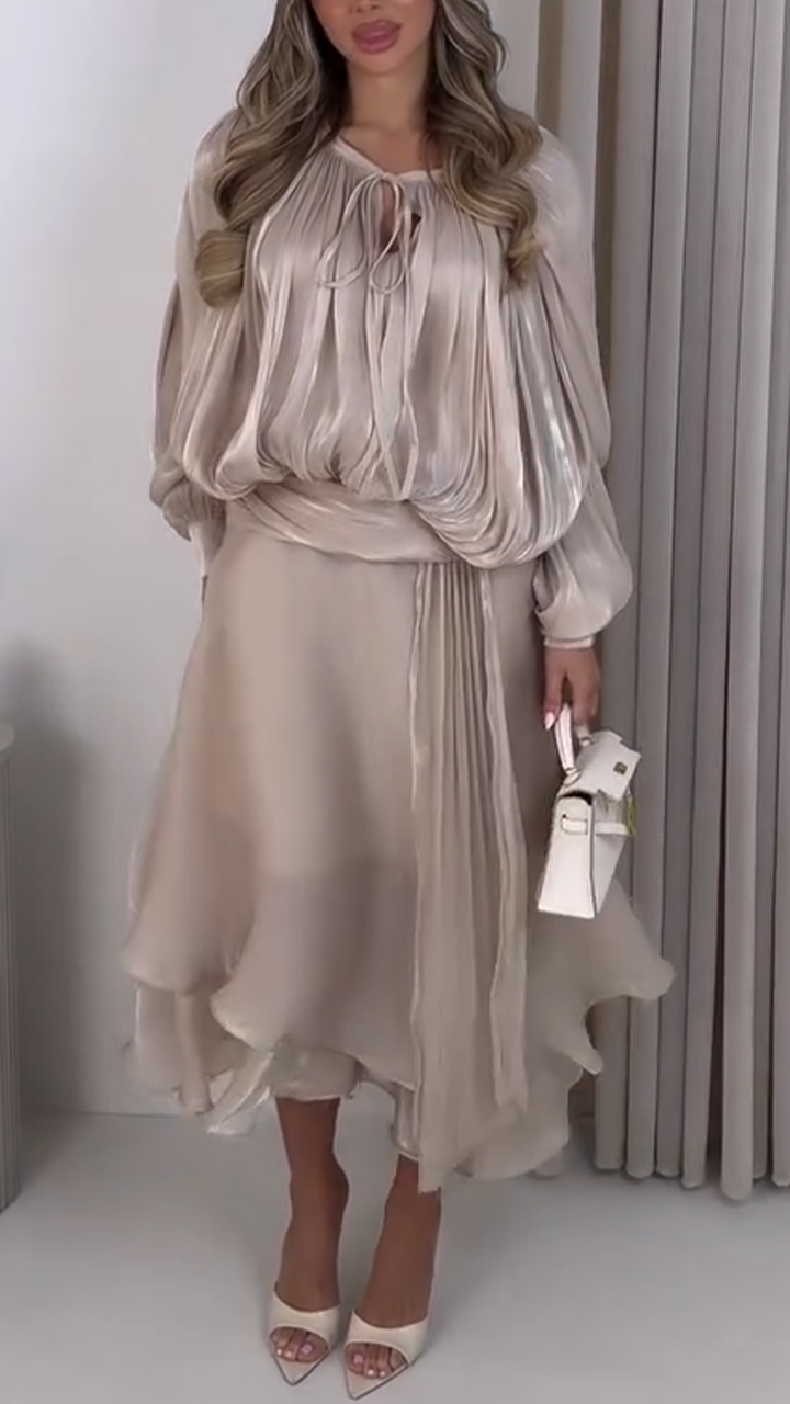 Womens Round Neck Top+ Irregular Skirt Elegant Casual Set
